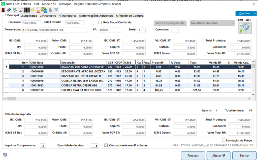 Entrada de nota fiscal centralizada, onde a conferência pode ser executada na loja e a entrada pela central.